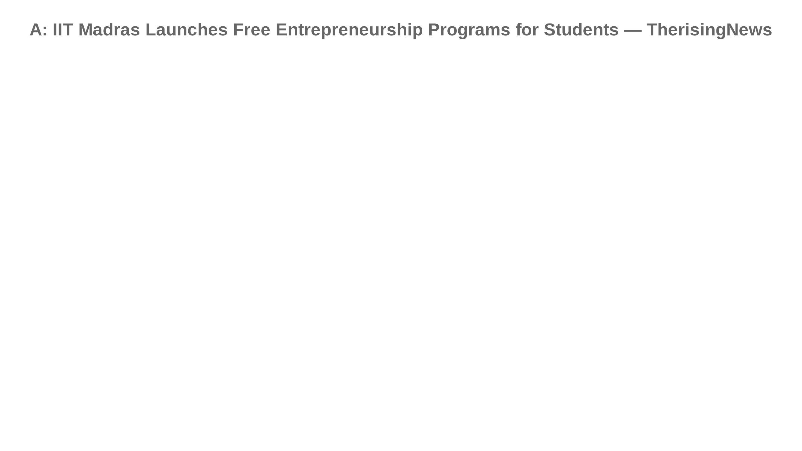 A: IIT Madras Launches Free Entrepreneurship Programs for Students